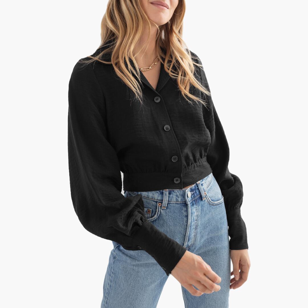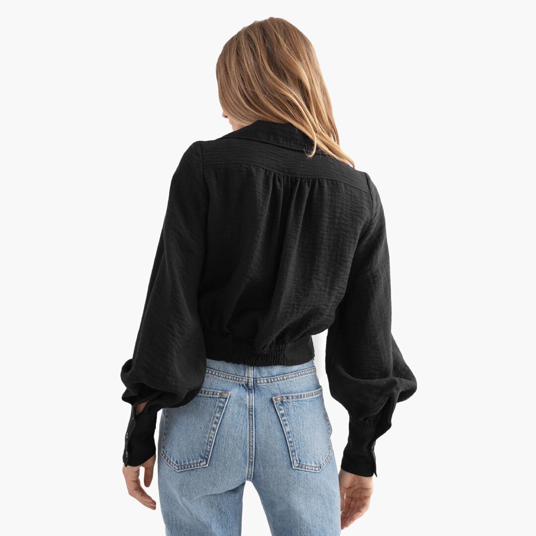 手首とウェストがキュッとなって、とてもかわいい長袖ブラウスです。